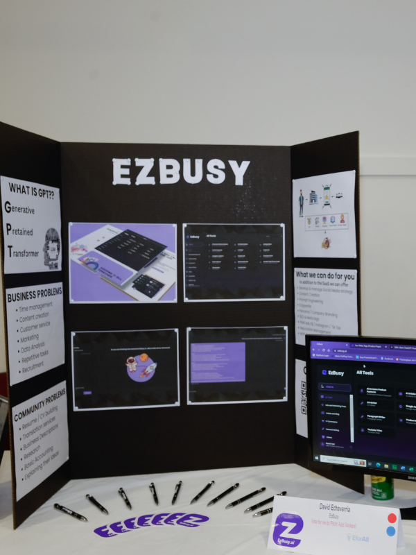Launched EzBusy.ai as a no-code SaaS concept at the EforAll Idea Pitch Contest, winning Crowd Favorite and validating demand for practical AI + automation & no code MVP's